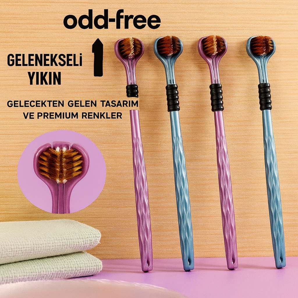 Odd-free, üç başlı tasarımıyla diş fırçalamayı daha etkili ve pratik hale getirir. Tüm yüzeylere aynı anda temas ederek üstün temizlik sağlar. Modern ve ergonomik tasarımıyla şıklığı ve işlevselliği bir araya getirir.