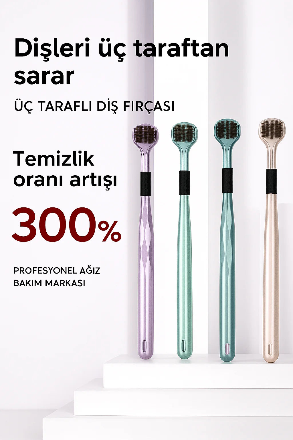 Dişleri üç taraftan saran özel başlığı sayesinde geleneksel fırçalara göre %300'e kadar fazla temizlik sağlar.Gelişmiş tasarımı,ağız bakımını daha etkili, hızlı ve zahmetsiz hale getirir. Profesyonel ağız bakımını günlük rutine taşır.
